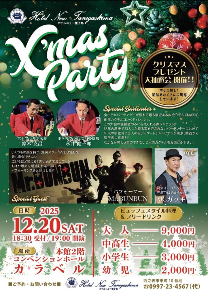12月20日(土)に本館2階「カラベル」にてX’mas Partyを開催いたします!!